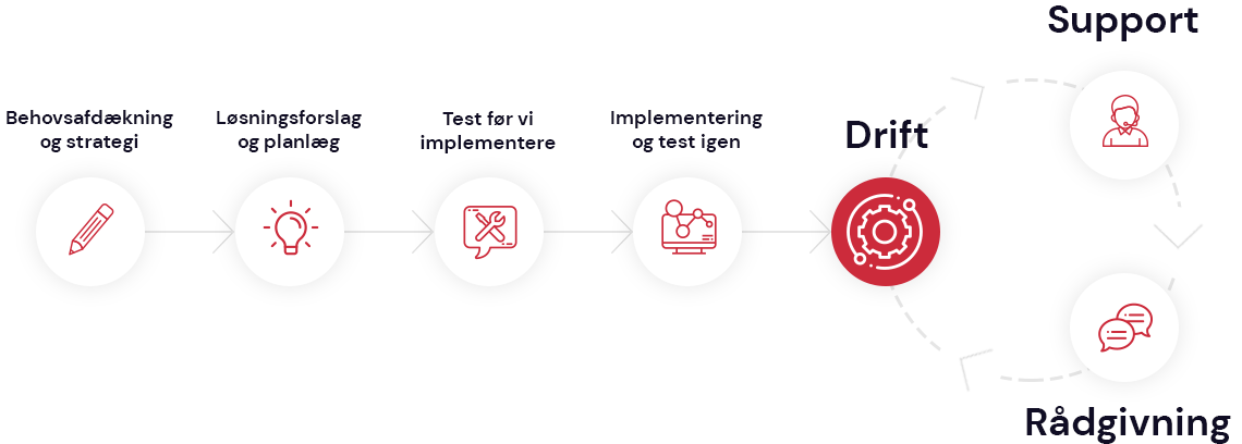 Har du brug for at vi overtager hele dit IT-miljø, med én fast kontaktperson, kan vi også være behjælpelige med det.